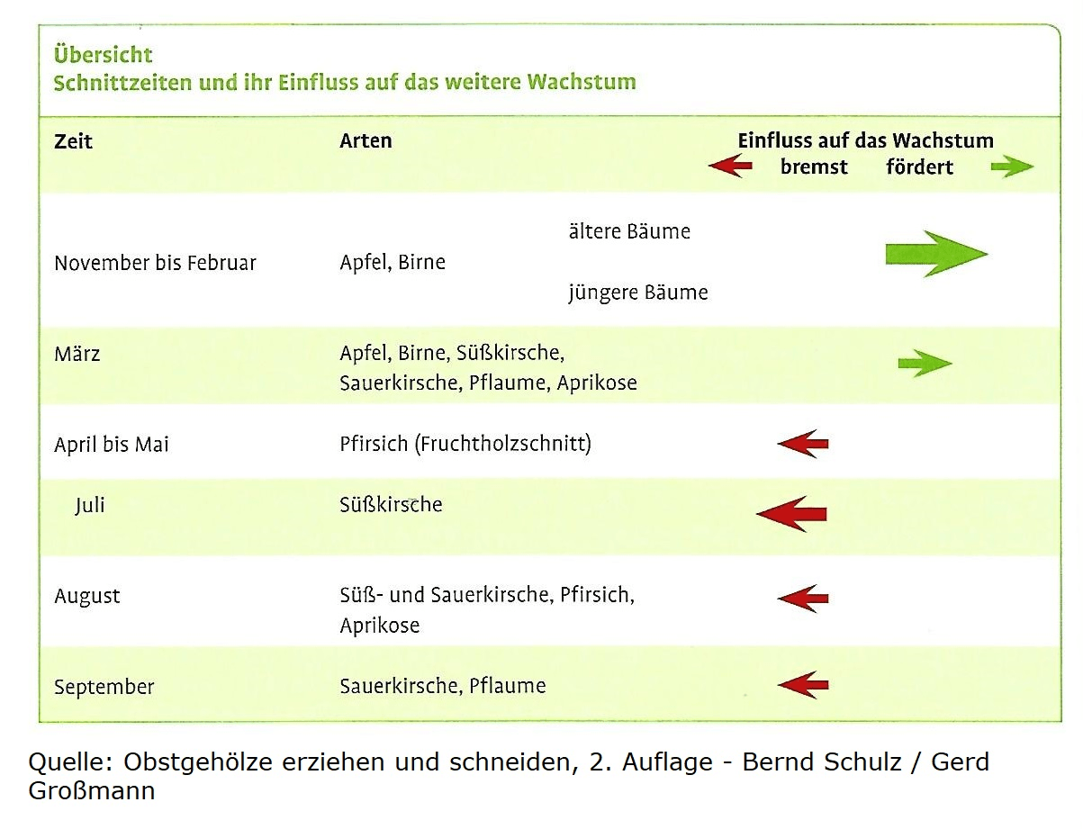 - Schnitt nach der Ernte, sowie im Frühjahr ab Anfang März (während dieser Zeiten verheilen die Schnittwunden sehr schnell und schotten sich rasch ab. Somit wird das Eindringen von Pilzinfektionen stark verhindert.)